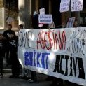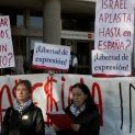Delante de una pancarta en la que podía leerse: "Israel asesina impunemente, boicot activo a Israel", se ha procedido a la lectura de dos comunicados. En el primero, el grupo de imputados reclamaba la acción por la que eran juzgados como parte de una amplia campaña internacional por el Boicot a Israel, declaraban su intención de continuar participando en la misma y se solidarizaban con la decena de activistas procesados en Francia por este mismo motivo. En el segundo comunicado, la Red Solidaria contra la Ocupación de Palestina mostraba su apoyo a los encausados y desglosaba los frentes en los que se amplía la campaña de Boicot, Desinversiones y Sanciones contra el Estado de Israel.