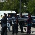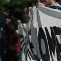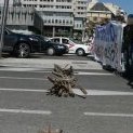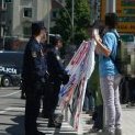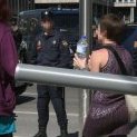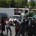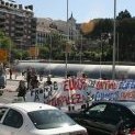 Minutos después de comenzada la acción, aparecen las primeras lecheras. En pocos minutos, la policía desarticula l@s cordones de activistas entubad@s en una de las principales arterias de la ciudad. L@s activistas son obligad@s a recoger las pancartas y el resto de materiales empleados en la realización de la acción.
