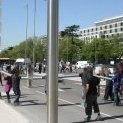 La policía parece buscar un lugar amplio y retirado donde congregar a l@s activistas. Finalmente lo encuentran frente a la Biblioteca Nacional donde empiezan las identificaciones. Pese a todo siguen coreando "Efecto invernadero, Obama y Zapatero", "Es patriarcal la Europa del capital", "Contra el capitalismo, ecofeminismo" y "Tomando las calles, rompiendo el silencio".