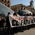 Minutos después, se ha procedido a la lectura de un comunicado, en el que l@s activistas se rebelan contra una "ciudad escaparate" y "al borde de la quiebra", donde la gente no puede pagar las hipotecas y no hay más recurso que los servicios sociales; una ciudad sometida a la videovigilancia que establece un férreo control sobre l@s migrantes, y donde hasta la identidad sexual sólo es un recurso para quien se lo puede permitir (en alusión a la mercantilización de las fiestas del Orgullo). Frente a eso, señalan, realizan esta acción simbólica en el "kilómetro 0 de la especulación", para trasladar al centro el "kilómetro 0 de la rebeldía, de la que es parte el Patio Maravillas".