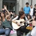 El entramado de la acción consistía en ir en procesión hasta la capilla de Somosaguas simbolizando el papel sumiso que se le otorga a la mujer desde la iglesia, que atraviesa nuestra cultura occidental, aún sin ser creyentes. El hecho de que el pañuelo morado estuviese presente en nuestra acción fue una manera más de reivindicarla como feminista. Al llegar a la capilla el grupo entramos de forma no violenta, sin ataques directos a las personas que se encontraban en el interior. Allí hicimos un círculo de mujeres y/o lesbianas y leímos un comunicado en el que se explicaba cómo la iglesia actúa como una institución que promulga unos valores machistas y heteropatriarcales. A continuación, citamos frases pertenecientes a instituciones y figuras íntimamente relacionadas con la iglesia que sentencian y criminalizan nuestros cuerpos. Tras la lectura, la mayoría de las que allí decidimos desnudarnos de cintura para arriba mostrando los mensajes que teníamos escritos en nuestros torsos, con la intención de reivindicar la re-apropiación de nuestros cuerpos y la identidad de cada una. En ese momento, entre lemas y consignas feministas, algunas mujeres empezaron a besarse visibilizando el lesbianismo y reivindicando una sexualidad libre. Finalmente, abandonamos la capilla sin causar ningún daño.