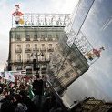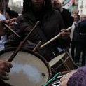 Varias bandas de música amenizaban el paseo y los lemas variaban continuamente en los distintos puntos de la manifestación. En todos los puntos se recordaba en algún momento la responsabilidad del estado español con el Sahara, la política de complicidad con el régimen criminal marroquí del gobierno del PSOE, se pedía libertar para el Sahara y para los presos saharauis y se animaba en la lucha del Frente Polisario.