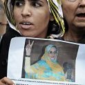 En las pancartas podía leerse: "Justicia Ya", "Por la libertad y la independencia del Sáhara", "Referemdum por el Sáhara" así como muchas con distintos lemas referentes a libertad de lo presos políticos.