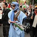La manifestación, de carácter estatal, ha contado con la presencia de compañeros desplazados de Galiza, Extremadura, Andalucia, Asturies, Euskal Herria, Castilla... que portaban banderas nacionales junto con las banderas Saharauis. Así, en la parte final de la manifestación, se llegaban a confundir los colores rojos, verdes y blancos de las numerosas ikurriñas con los de las banderas saharauis. Aunque, sin duda, la presencia más numerosa era la de saharauis residentes en el estado. Muchos de ellos ayudando a portar las numerosas banderas gigantes que podían verse en el recorrido.