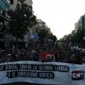 La estación de Oporto, en Carabanchel, era el punto de partida de la manifestación convocada por CNT con motivo de la Huelga General. Bajo altas medidas de seguridad, lxs manifestantes han discurrido por los dos carriles derechos de la calle General Ricardos hasta la glorieta de Marqués de Vadillo. Por delante, 4 furgones de la policía nacional, varios coches y decenas de efectivos marcaban el ritmo de la marcha. Por detrás más de lo mismo, y a los lados una hilera de agentes nacionales separados por tramos de 10 metros, marcaban el cerco de toda la manifestación, que ha podido reunir alrededor de 2.000 personas.