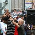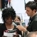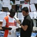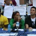 Rodeados de carteles con testimonios de víctimas de redadas y fotografías de controles policiales en el barrio de Lavapiés, han intervenido dos miembros del Ferrocarril Clandestino (Francisco Alhambra y el abogado Juan Rubiño), Rafaela Pimentel, Bass N’Done (Asociación de Sin Papeles de Madrid) y Nacho Murgui (“Red Derecho a tener Derechos”).